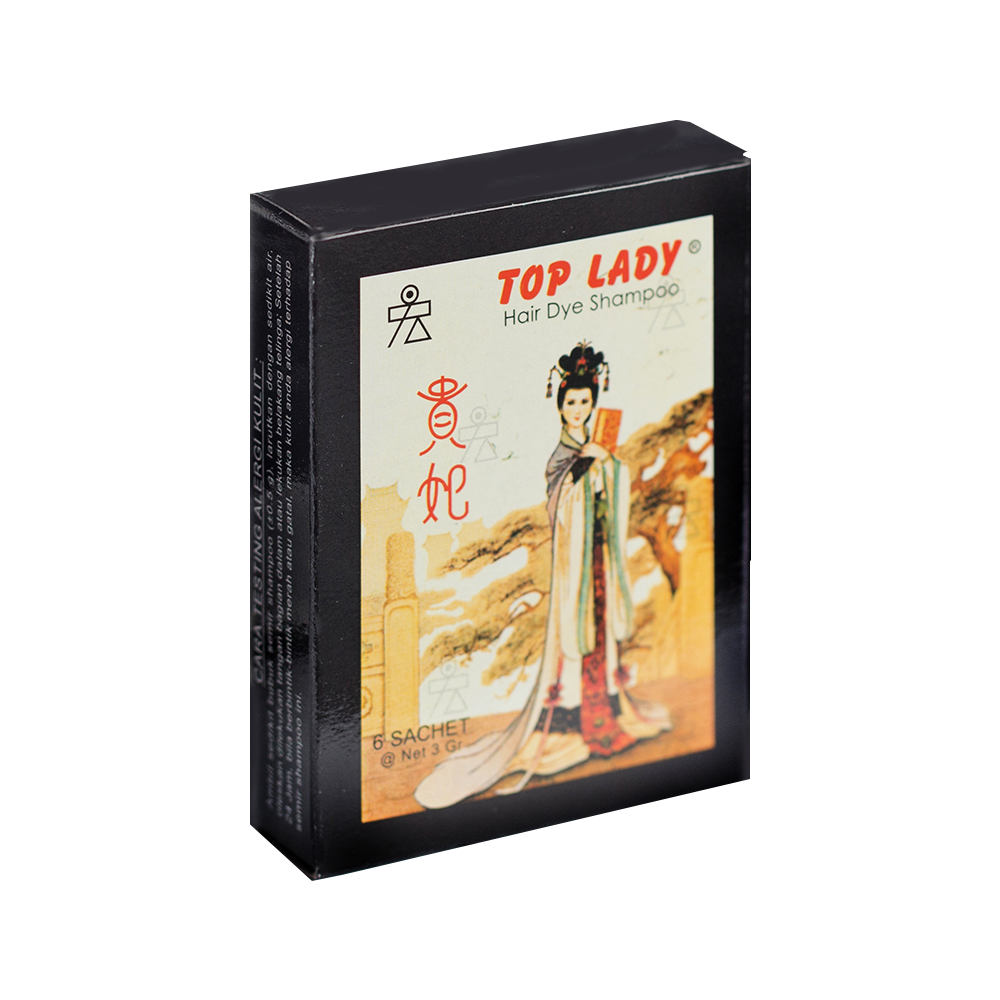 TOP LADY HAIR DYE SHAMPOO adalah semir rambut berbentuk shampoo yang dapat langsung menghitamkan rambut beruban dengan cara keramas. Karena kemasannya yang berbentuk sachet 3gr dan hanya untuk sekali pakai , TOP LADY HAIR DYE SHAMPOO sangat praktis digunakan di mana dan kapan saja.